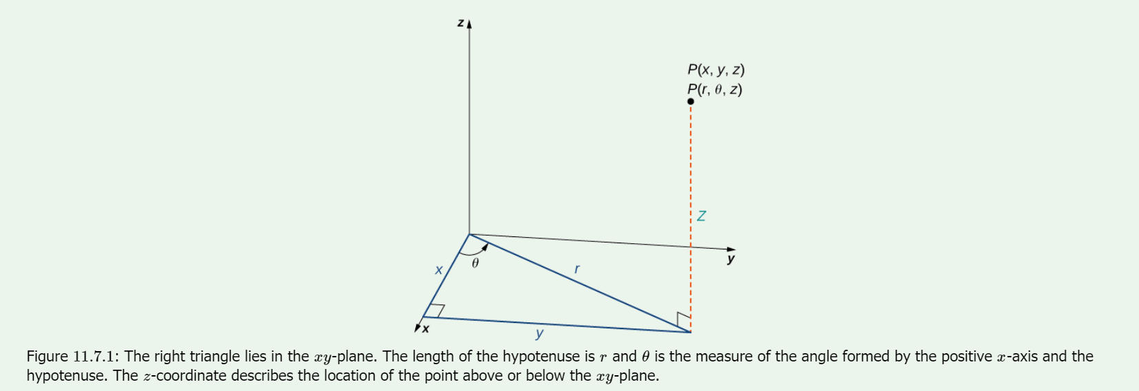 In the cylindrical coordinate system, a point in space (Figure ) is represented by the ordered triple where